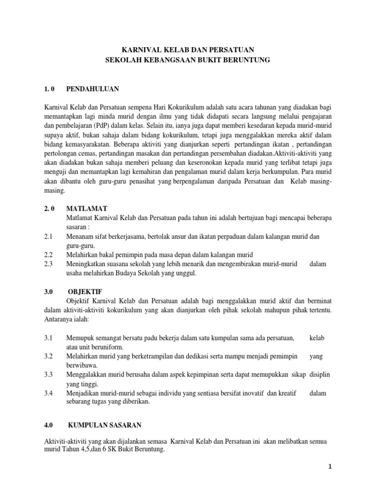 Kertas Kerja Karnival Kelab Dan Persatuan Pdf