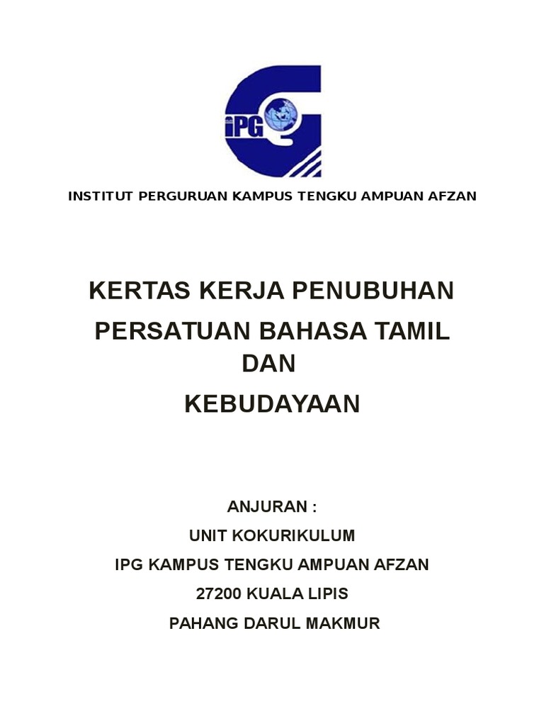 Menjalankan aktiviti Post Mortem Tamat 140 Penutup Penubuhan Persatuan Bahasa Tamil ini akan memberikan. Download Contoh Kertas Kerja Cadangan Penubuhan Persatuan Bahasa Melayu. SEKOLAH KEBANGSAAN TAMAN BUKIT INDAH 81200 JOHOR BAHRU JOHOR KERTAS KERJA PENUBUHAN KELAB REKACIPTA DISEDIAKAN OLEH.